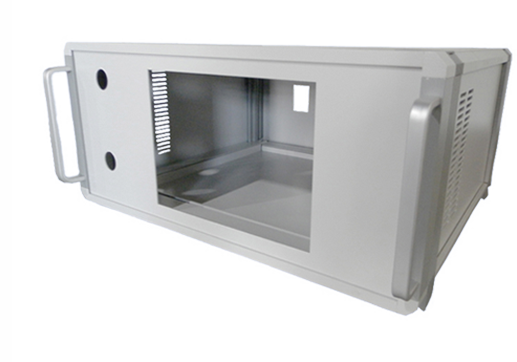 G型機箱由蓋板,底板,前面板,后面板,側板,前梁,后梁,前法蘭,后法蘭等配件組裝而成,為機架式機箱,把手兩側帶有耳朵直接固定的機器內。機箱表面處理分為噴塑、氧化等。