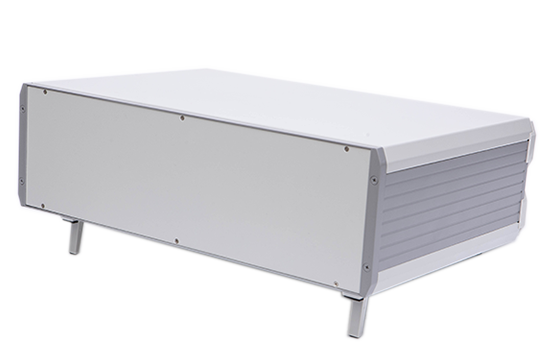 A型機箱由上蓋板,下蓋板,前面板,后面板,側板,底腳,把手,前后梁等配件組裝而成,為臺式機箱。標配型機箱表面經噴塑處理,噴塑的塑粉顏色可以按照客戶要求選定,白、灰色為行業首選的經典顏色。